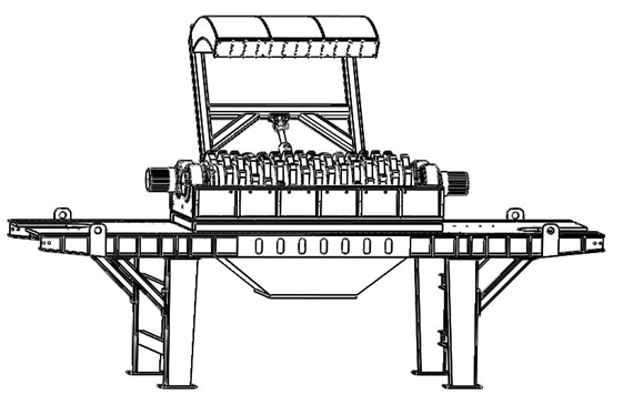 该撕碎机结构由下箱体、上箱体、内隔板、刀轴、动刀、动刀隔套、滚子轴承、定刀、定刀固定板以及相应的密封结构组成,结构示意图如下图所示。